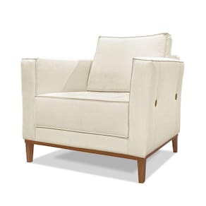 Poltrona Base De Madeira Sala De Estar Grace Linho Natural S04 - D`rossi - Blush
