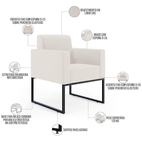 Poltrona Decorativa Para Sala De Estar E Recepção Base Fixa De Metal Helô L02 Linho Cru - Lyam Decor Quer uma Poltrona para inovar e deixar seu ambiente mais moderno? A Poltrona Decorativa Para Sala De Estar E Recepção Base Fixa De Metal Helô L02 Linho Cru - Lyam Decor é a melhor opção. Sua base fixa em aço deixa sua decoração além de elegante muito marcante. Com design robusto e revestimento de máxima qualidade ela é perfeita para compor sua sala de estar, recepção, quarto ou hall de entrada. Você merece algo de máximo conforto e qualidade! Adquira já a sua! Dimensões do produto (A x L x P) 86 x 66 x 68 cm Medidas Internas: Largura do assento: 50 cm Profundidade do assento: 45 cm Altura do chão ao assento: 47 cm Altura do encosto: 44 cm Altura interna do braço: 22 cm Largura do braço: 09 cm Altura do encosto ao braço: 19 cm Altura do chão aos braços: 66 cm Altura do braço: 36 cm Altura da base: 30 cm Profundidade da base: 65 cm - Por se tratar de estofado as medidas podem ter uma pequena variação de até 3 cm. - A tonalidade do produto real poderá ter ligeira variação devido o lote de tecidos. Características: Estrutura em madeira de reflorestamento de eucalipto, pinus e MDF. Base fixa com tubos de aço carbono, espessura de 20mm e acabamento em pintura eletrostática na cor preto. Revestimento em Linho Cru. Assento Fixo com espuma D-26 Sobre Percintas elásticas. Encosto Fixo com espuma D-23 Sobre Percintas elásticas. Braço com espuma D-26. Percinta elástica 50mm. Peso suportado: Até 120 kg. Observações importantes: - Produto para residencial em ambiente interno, não devendo ficar exposto diretamente ao sol, calor e umidade excessivos. - Pode haver alguma diferença de tonalidade entre a imagem e o produto real, por conta do tratamento de imagens e a calibração de cores do seu monitor. - As imagens são meramente ilustrativas, não acompanham objetos de decoração e eletrônicos. - Ao receber a mercadoria, o cliente deve verificar as condições da embalagem, caso haja alguma não assine o comprovante de recebimento. - Montagem, desmontagem e outras instalações serão de responsabilidade do cliente. Não nos responsabilizamos, no ato da , por subir escadas/elevadores ou pelo transporte por guincho em apartamentos. Eventuais despesas são de responsabilidade do comprador. - Confira as dimensões do produto e certifique-se de que passará normalmente por supostos elevadores, portas, escadas e/ou corredores de sua residência. NA