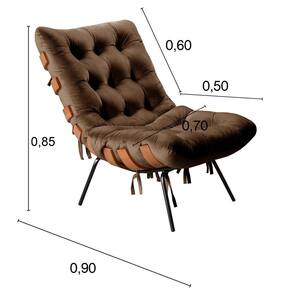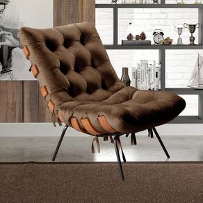 Produto seguro para até 120kg Acompanha Almofadas extras: Não Acompanha Puff: Não Almofada do assento: Não Possui Almofada do encosto: Não Possui Altura do assento até o chão: 50 Altura do Encosto: 85 Ambiente Principal: Sala de Estar Complexidade da Montagem: Baixa: pode ser montado por uma pessoa sozinha Cor: Marrom Cor do Produto: Marrom Design Assinado: Sim Encosto para a Cabeça: Não Estampado: Não Extensível: Não Itens Inclusos: 1 Poltrona, Pés Linha ou Coleção: Costela Material dos Pés: Ferro Modelo de Poltrona: Fixo Necessita Montagem: Sim Origem do Produto: Nacional Peso: 18 kg Possui Percintas Elásticas: Não Possui Pés: 02 Possui Rodízio: Não Recomendações de Uso, Manutenção e Limpeza: Limpeza e cuidados: pode ser utilizado aspirador de pó, escova com cerdas macias ou limpeza a seco. Não utilizar produtos químicos, abrasivos ou limpeza a vapor. Evitar exposição prolongada ao sol. Sistema de Montagem: Apenas Enroscar os pés Suporta Até (kg): 120 Tecido Predominante: Veludo Tipo de Assento: Fixo Tipo de Encosto: Fixo Tipo de Poltrona: Decorativa