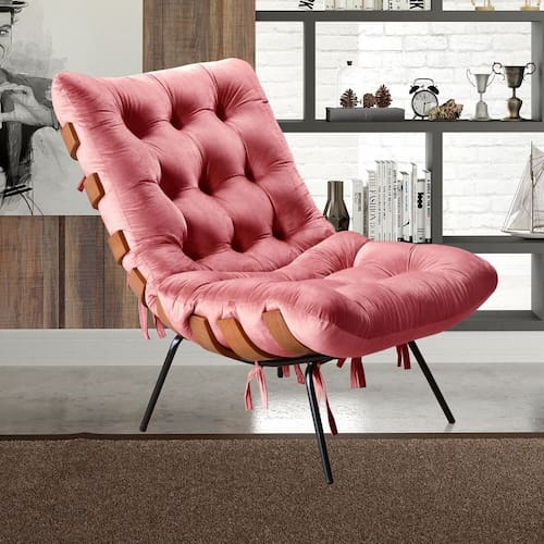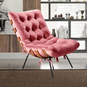 Poltrona Base Fixa para Sala de Estar Costela Rosa