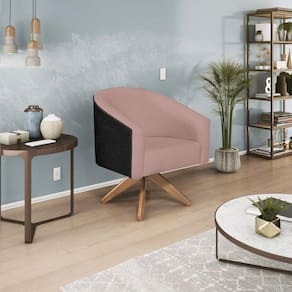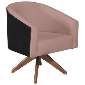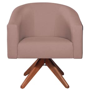 Poltrona Base Giratória de Madeira Factor Linho Mariana Maranata Estofados Rose - Rosa