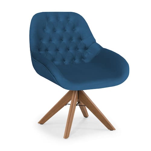 Poltrona Base Giratória Madeira Capitonê Zari Decor - Azul Marinho