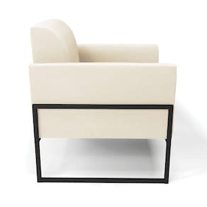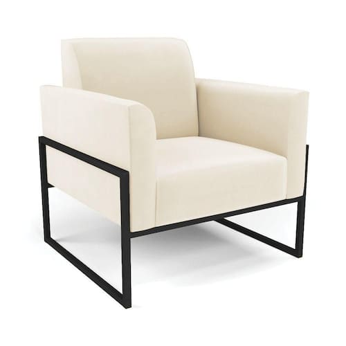 Dimensões da Poltrona: Altura total: 76 cm Largura total: 64 cm Profundidade total: 64 cm Altura do encosto: 36 cm Largura do assento: 47 cm Profundidade do assento: 48 cm Altura do chão ao assento: 45 cm Espessura do assento: 18 cm Tamanho dos pés: 30 cm Espessura do braço: 9 cm Peso: 16 kg