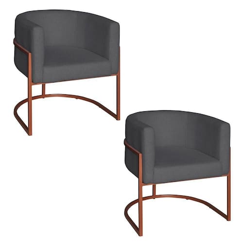 Poltrona Base Industrial Bronze Kit 2 Lety Veludo S05 - D`rossi Cor Grafite - Blush