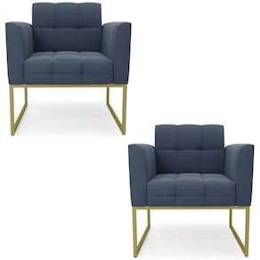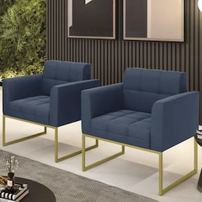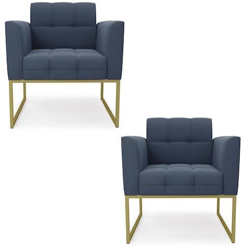 Você está procurando um Kit Poltrona que combine com a sua Sala De Estar, recepção ou seu quarto, que ofereça conforto e qualidade? Então você vai adorar a Poltrona Base Industrial Dourado Kit 2 Ana Suede Azul Marinho, da Ibiza!