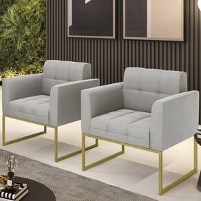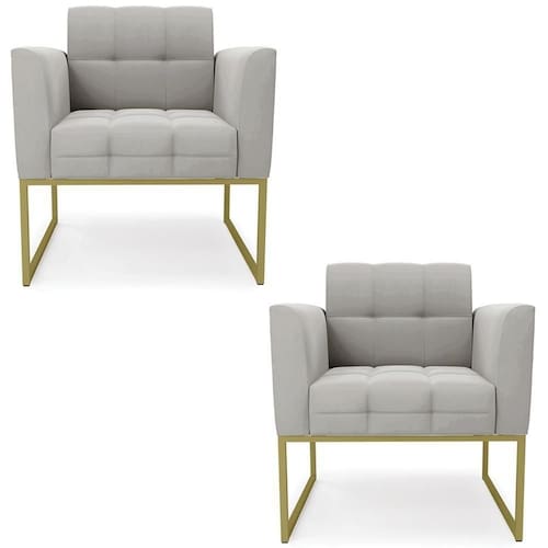Você está procurando um Kit Poltrona que combine com a sua Sala De Estar, recepção ou seu quarto, que ofereça conforto e qualidade? Então você vai adorar a Poltrona Base Industrial Dourado Kit 2 Ana Veludo Cinza, da Ibiza!