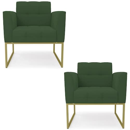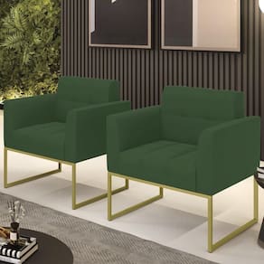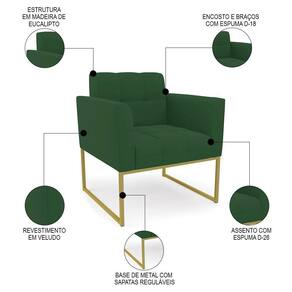 Você está procurando um Kit Poltrona que combine com a sua Sala De Estar, recepção ou seu quarto, que ofereça conforto e qualidade? Então você vai adorar a Poltrona Base Industrial Dourado Kit 2 Ana Veludo Verde, da Ibiza!