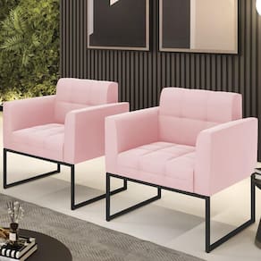 Você está procurando um Kit Poltrona que combine com a sua Sala De Estar, recepção ou seu quarto, que ofereça conforto e qualidade? Então você vai adorar a Poltrona Base Industrial Preto Kit 2 Ana Suede Rosa Bebê, da Ibiza!
