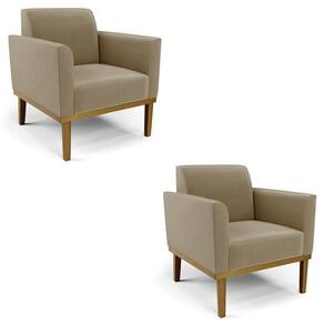 A Poltrona Decorativa é revestida em Suede, que é durável e fácil de limpar, e ainda valoriza o design da poltrona. Os braços e encosto são confortáveis em espuma D-18, já o assento é com espuma D-26 de alta densidade, que garante um assento firme e aconchegante, ideal para relaxar após um dia cansativo. A base em madeira de eucalipto é um charme à parte, que confere um toque Rústico e sofisticado à peça. São 2 poltronas com estrutura resistente que suporta até 120 kg cada. A montagem é muito simples, pois a poltrona já vem pronta, bastando apenas fixar a base com os parafusos que acompanham o produto. A limpeza também é muito prática, pois basta utilizar um pano limpo e levemente úmido, sem produtos abrasivos, para manter a sua poltrona sempre em bom estado. Sem dúvidas a Poltrona Para Sala vai transformar seu ambiente, deixando mais confortável e estiloso!