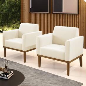 A Poltrona Decorativa é revestida em Veludo, que é durável e fácil de limpar, e ainda valoriza o design da poltrona. Os braços e encosto são confortáveis em espuma D-18, já o assento é com espuma D-26 de alta densidade, que garante um assento firme e aconchegante, ideal para relaxar após um dia cansativo. A base em madeira de eucalipto é um charme à parte, que confere um toque Rústico e sofisticado à peça. São 2 poltronas com estrutura resistente que suporta até 120 kg cada. A montagem é muito simples, pois a poltrona já vem pronta, bastando apenas fixar a base com os parafusos que acompanham o produto. A limpeza também é muito prática, pois basta utilizar um pano limpo e levemente úmido, sem produtos abrasivos, para manter a sua poltrona sempre em bom estado. Sem dúvidas a Poltrona Para Sala vai transformar seu ambiente, deixando mais confortável e estiloso!