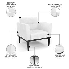 A Poltrona Decorativa é revestida em sintético PU, que é durável e fácil de limpar, e ainda valoriza o design da poltrona. Os braços e encosto são confortáveis em espuma D-18, já o assento é com espuma D-26 de alta densidade, que garante um assento firme e aconchegante, ideal para relaxar após um dia cansativo. A base em madeira de eucalipto é um charme à parte, que confere um toque Rústico e sofisticado à peça. São 2 poltronas com estrutura resistente que suporta até 120 kg cada. A montagem é muito simples, pois a poltrona já vem pronta, bastando apenas fixar a base com os parafusos que acompanham o produto. A limpeza também é muito prática, pois basta utilizar um pano limpo e levemente úmido, sem produtos abrasivos, para manter a sua poltrona sempre em bom estado. Sem dúvidas a Poltrona Para Sala vai transformar seu ambiente, deixando mais confortável e estiloso!
