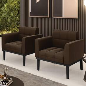 Você está procurando um Kit Poltrona que combine com a sua Sala De Estar, recepção ou seu quarto, que ofereça conforto e qualidade? Então você vai adorar a Poltrona Base Madeira Preto Kit 2 Ana Suede Marrom, da Ibiza!