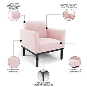 Você está procurando um Kit Poltrona que combine com a sua Sala De Estar, recepção ou seu quarto, que ofereça conforto e qualidade? Então você vai adorar a Poltrona Base Madeira Preto Kit 2 Maressa Suede Rosa Bebê, da Ibiza!