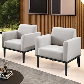 A Poltrona Decorativa é revestida em Veludo, que é durável e fácil de limpar, e ainda valoriza o design da poltrona. Os braços e encosto são confortáveis em espuma D-18, já o assento é com espuma D-26 de alta densidade, que garante um assento firme e aconchegante, ideal para relaxar após um dia cansativo. A base em madeira de eucalipto é um charme à parte, que confere um toque Rústico e sofisticado à peça. São 2 poltronas com estrutura resistente que suporta até 120 kg cada. A montagem é muito simples, pois a poltrona já vem pronta, bastando apenas fixar a base com os parafusos que acompanham o produto. A limpeza também é muito prática, pois basta utilizar um pano limpo e levemente úmido, sem produtos abrasivos, para manter a sua poltrona sempre em bom estado. Sem dúvidas a Poltrona Para Sala vai transformar seu ambiente, deixando mais confortável e estiloso!