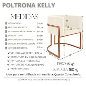 A Cadeira Poltrona Decorativa Base Dourada Com Veludo Preto é a escolha perfeita para quem procura um móvel que una elegância, conforto e resistência. Com seu design moderno e sofisticado, essa poltrona vai transformar o seu ambiente, deixando-o mais acolhedor, contemporâneo e personalizado. Com um suporte de até 150 kg, essa poltrona é resistente e ideal para pessoas de diferentes estaturas e pesos. Além disso, seu revestimento em veludo preto confere um toque de luxo, tornando-a uma peça de destaque na decoração. A poltrona é recomendada para uso em ambientes internos, não sendo indicada para uso externo. Seu material de alta qualidade garante durabilidade e resistência, permitindo que você desfrute de momentos de conforto por muito tempo. Além de sua beleza e resistência, essa poltrona também oferece facilidade na montagem. Ela já vem montada, facilitando ainda mais a sua vida. Não é necessário ter conhecimentos técnicos para montá-la, basta escolher o local ideal e aproveitar todo o conforto que ela proporciona. A Industria Decore é uma marca renomada no mercado de móveis e decoração. Reconhecida por sua qualidade e design inovador, a marca oferece produtos que aliam funcionalidade e beleza, visando sempre a satisfação dos clientes. 1. Qual o peso suportado pela poltrona? A poltrona suporta até 150 kg. 2. Posso utilizar a poltrona em ambientes externos? Não, a poltrona é recomendada apenas para uso em ambientes internos. 3. A poltrona é fácil de montar? Ela vai montada, a montagem da poltrona é simples e rápida, não exigindo conhecimentos técnicos. 4. Qual a do produto? O produto possui de 90 dias contra defeitos de fabricação. Adquira agora mesmo a Cadeira Poltrona Decorativa Base Dourada Com Veludo Preto da Industria Decore e transforme seu ambiente em um espaço elegante, confortável e cheio de estilo. Garanta já a sua! Marca: Não Informado