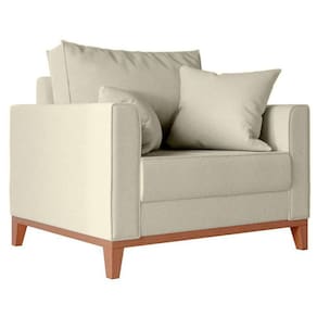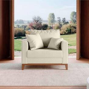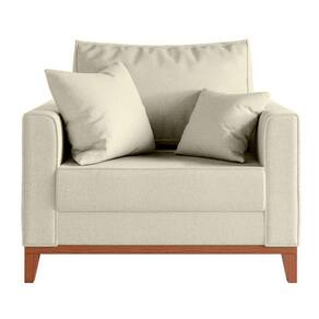 Poltrona Beny Com Pés E Base De Madeira - élpis Móveis Linho Bege