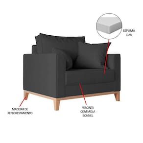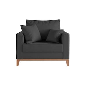 IMAGENS MERAMENTE ILUSTRATIVAS REALIZADO EDIÇÃO, PODENDO HAVER UMA PEQUENA VARIAÇÃO DE COR DEPENDENDO DE CADA TELA OU MONITOR.Poltrona Beny Decorativa com 2 Almofadas Veludo Cinza Base em Madeira MaciÃa
