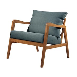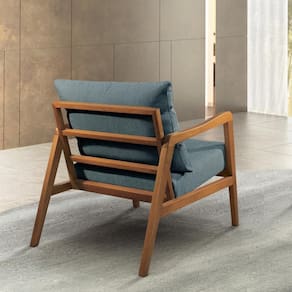 Poltrona Bia Luxo Madeira Maciça Castellar Móbile Linho Azul Linho Azul