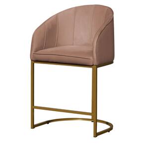 Poltrona Cadeira Banqueta Mia Base Dourada Veludo Rosa - Montanaris Decor