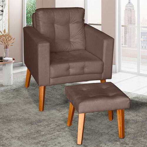 Poltrona Cadeira Com Puff Glamour Dubai Com Pés Em Madeira marrom