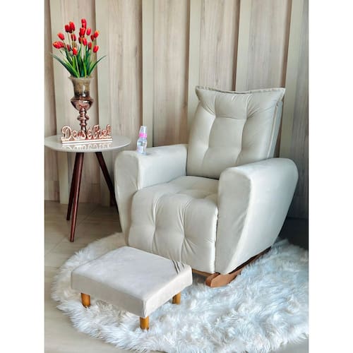 Poltrona Cadeira de Amamentação Balanço e Puff Ternura