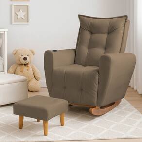 Poltrona Cadeira de Amamentação Balanço e Puff Ternura Capuccino - Marrom Cacau
