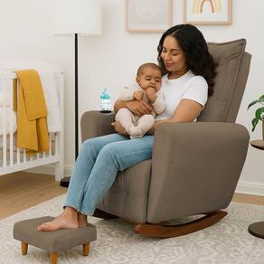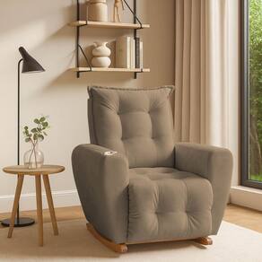 Poltrona Cadeira de Amamentação Balanço e Puff Ternura Capuccino - Bege Médio