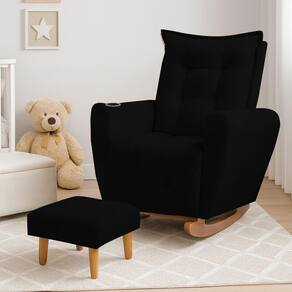 Poltrona Cadeira de Amamentação Balanço e Puff Ternura Preto