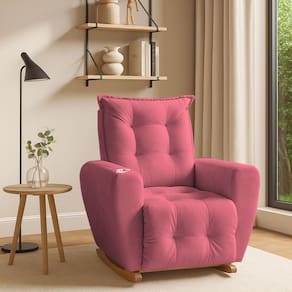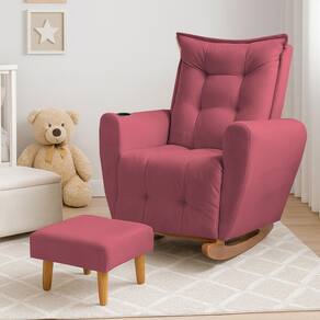 Poltrona Cadeira de Amamentação Balanço e Puff Ternura Rosa - Rosa Claro