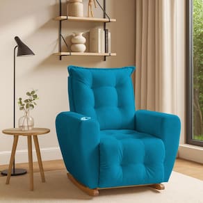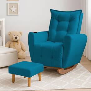 Poltrona Cadeira de Amamentação Balanço e Puff Ternura Turquesa - Azul Turquesa