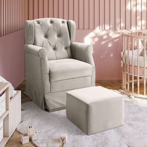 A poltrona amamentação proporciona todo o conforto e aconchego que a família precisa nesta fase tão especial, e encanta pelo seu estilo sofisticado. Feita com matéria-prima de alta qualidade a poltrona possui estofado revestido por tecido de toque suave que proporciona aconchego para os momentos de amamentação. O puff quadrado traz conforto e beleza para a rotina da mamãe, e ajuda no descanso para pernas e pés tornando o momento ainda mais confortável. A poltrona possui um balanço suave em sua base, e um encosto alto com espuma de excelente densidade e estrutura sólida de madeira.