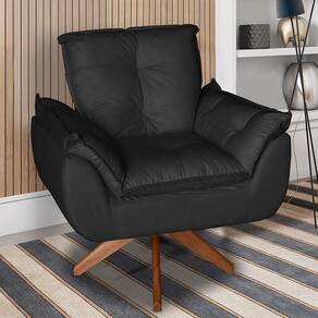 Poltrona/Cadeira Decorativa Glamour Giratória Preto - Kit poltrona com Puff