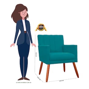 Poltrona Cadeira Estofada Para Hall de Entrada Cecília Suede Azul Turquesa - LM DECOR
