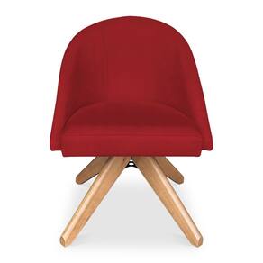 Poltrona Cadeira Giratória Bela Suede Vermelho Base de Madeira - Pallazio