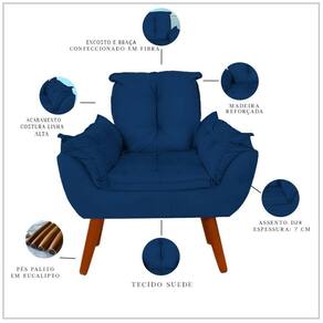 A poltrona decorativa impala proporciona um toque de charme e beleza em seu lar, feita com matéria prima de primeira qualidade, revestida de fibra e percinta no encosto e espuma no assento.Especificações:- estrutura: mdf e eucalipto- tecido: suede- pés: madeiraDimensões externas:Altura : 89 cmLargura: 86 cmComprimento: 86 cmDimensões internas:Altura encosto x assento: 53 cmAltura do chão até o assento: 50 cmProfundidade do assento: 52 cmLargura do assento: 46 cmPés palito envernizados cor melPeso suportado: até 100 kg sem impactoGarantia de fábrica 90 dias para somente defeito de fábrica.AtençãoInstruções de limpeza: utilizar um pano limpo e seco. Não limpar com escovas ou produtos abrasivos,No prazo de garantia não é permitido fazer impermeabilização, pois caso seja feita perde totalmente garantia.Obs: este produto é recomendado para ambientes residenciais em áreas internas, por isso, não o deixe exposto à luz direta do sol, para que não sofra alteração na corMontagem é simples e dever do cliente somente rosquear os pés .Em caso de devolução do produtoAceitaremos a devolução nós seguinte termos.O produto deverá ser embalado da mesma forma que foi entregue, não deverá ter rasgos ou esteja com fissuras.Deverá ser etiquetado de igual modo para que não haja extravio, deverá ter nota de devolução.O produto não poderá estar danificado ou com marcas de usoInformamos que o horário de coleta é horário somente comercial.Fica acordado que finalizar a compra estou totalmente de acordo com toda descrição a qual fui informado através do anuncio a qual afirmo no ato da finalização da compra ter lido.Qualquer duvida estamos a disposição. Marca: Decore.Com