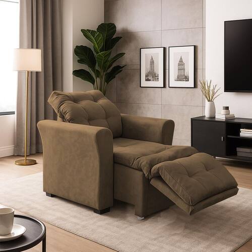 Poltrona do Papai Conforto Reclinável e Retrátil Bellagio Boucle Procurando por uma poltrona que una conforto extremo e estilo incomparável? Esta Poltrona do Papai foi desenvolvida para pessoas exigentes e de bom gosto que buscam o máximo em bem-estar e sofisticação. Produzida com materiais de alta qualidade e por profissionais qualificados, ela garante não apenas durabilidade, mas também um conforto que transforma seu dia a dia. Ideal para Todos os Momentos e Necessidades Esta poltrona é perfeitamente indicada para seu momento de lazer e descanso, seja para a leitura de um bom livro, ou para maratonar sua série favorita, filmes e jogos. Além disso, ela é uma excelente aliada para quem necessita de um suporte extra: • Pessoas Idosas: Oferece um assento confortável e seguro. • Pessoas com Necessidades Especiais: Proporciona o apoio e o conforto essenciais para o dia a dia. • Clínicas e Consultórios: Perfeita para o uso de pacientes ou de seus acompanhantes, garantindo comodidade durante a espera ou recuperação. Funcionalidades e Mecanismo O design focado no seu bem-estar traz um mecanismo prático e fácil de usar: • Assento Retrátil: Maior profundidade para máximo relaxamento. • Encosto Reclinável: Possui quatro níveis de inclinação para você encontrar a posição perfeita. • Apoio Extra para os Pés: Acionado junto com o assento, proporciona um conforto ainda maior. • Extremamente Confortável: A prioridade em sua construção. OBSERVAÇÃO IMPORTANTE SOBRE O ACIONAMENTO: Por essa razão, pessoas com deficiência física ou idosos muito debilitados podem precisar da ajuda de um acompanhante para acioná-lo completamente. Dimensões e Cuidados Conheça as especificações para garantir que ela se encaixe perfeitamente no seu espaço: Dimensões da Poltrona • Largura: 76cm • Altura: 97cm • Profundidade (Fechada): 104 cm • Profundidade Total (Assento Aberto + Descanso de Pés): 180 cm