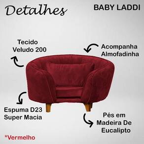 Poltrona Cama Caminha Pet Baby Laddi Veludo, é uma peça de mobiliário especialmente projetada para oferecer conforto e aconchego ao seu pet de estimação. Estrutura produzida em Madeira de Eucalipto e MDF modelado, sendo perfeita tanto como poltrona quanto como cama para o seu pet. Possui um enchimento em espuma D23, que proporciona um suporte macio e confortável para o seu pet descansar, tecido utilizado na poltrona é veludo, resistente e de fácil limpeza, tornando a poltrona pet durável e prática de cuidar. Os 04 pés da poltrona são feitos de madeira de eucalipto com acabamento envernizado em tinta PU com haste para fixação.