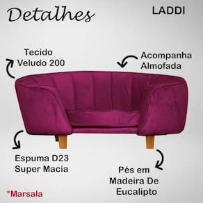 Poltrona Cama Caminha Pet Baby Laddi Veludo, é uma peça de mobiliário especialmente projetada para oferecer conforto e aconchego ao seu pet de estimação. Estrutura produzida em Madeira de Eucalipto e MDF modelado, sendo perfeita tanto como poltrona quanto como cama para o seu pet. Possui um enchimento em espuma D23, que proporciona um suporte macio e confortável para o seu pet descansar, tecido utilizado na poltrona é veludo, resistente e de fácil limpeza, tornando a poltrona pet durável e prática de cuidar. Os 04 pés da poltrona são feitos de madeira de eucalipto com acabamento envernizado em tinta PU com haste para fixação.