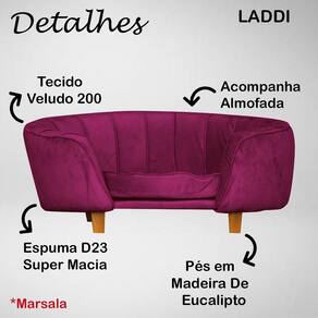 Poltrona Cama Caminha Pet Laddi Veludo Marsala Dvinn