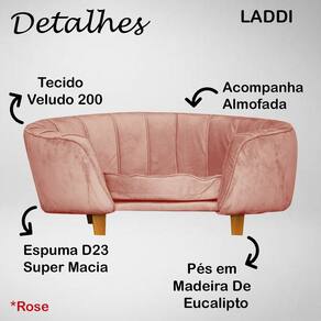 Poltrona Cama Caminha Pet Laddi Veludo Rose Dvinn