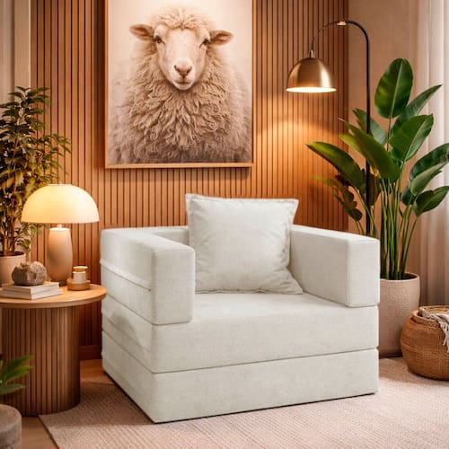 Poltrona Cama Modular Mold Boucle Bege - Loja Sheep - Bege Claro