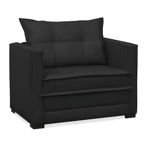 Poltrona Cama Retrátil Solteiro Milenni Veludo Preto B03 - D'rossi Versátil e funcional, a Poltrona Cama Retrátil Milenni na cor Preto é a escolha ideal para quem busca otimizar espaços com estilo. Durante o dia, funciona como uma poltrona elegante e aconchegante; à noite, transforma-se facilmente em uma cama de solteiro com 210 cm de profundidade aberta, perfeita para acomodar visitas ou aproveitar momentos de descanso. O revestimento em veludo garante um toque macio e sofisticado, enquanto a almofada solta removível com enchimento em fibra siliconada adiciona um toque extra de aconchego ao encosto. A estrutura em madeira de eucalipto reflorestada e os pés de madeira proporcionam resistência e durabilidade,suportando até 110 kg distribuídos. Com design compacto, tamanho inteligente e peso leve, a Poltrona Cama Milenni se adapta a diferentes ambientes, desde salas e quartos até estúdios e home offices. Dimensões do Produto: