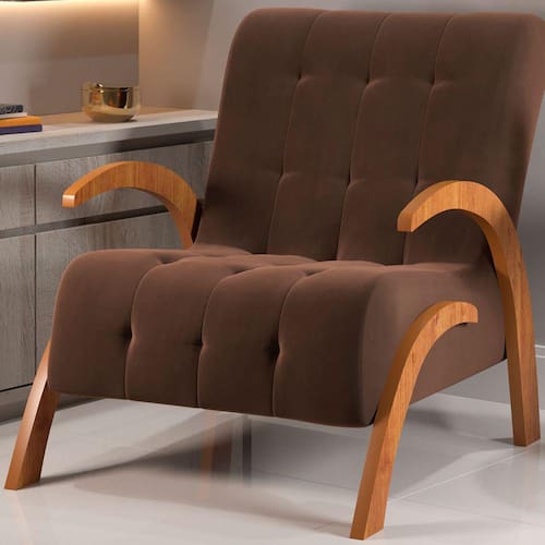 O(a) Poltrona Cecilia Marrom/Veludo Bombom - Viero Móveis é produzido em Espuma e MDP/MDF na escala de brilho Semi-Brilho, e possui um grau de dificuldade de montagem: Fácil.