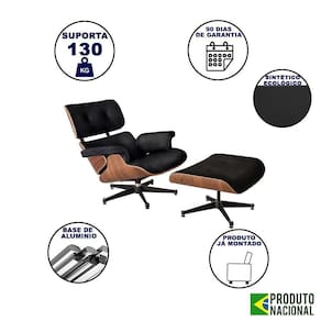 AS IMAGENS SÃO MERAMENTE ILUSTRATIVAS E PODEM SOFRER VARIAÇÕES DE COR E PEQUENOS DETALHES DE ACORDO COM O SEU MONITOR, ILUMINAÇÃO DO AMBIENTE E ATÉ MESMO A SUA PERCEPÇÃO VISUAL.Poltrona Charles Eames com Puff Couro EcolÃgico Preto