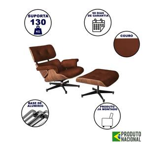 AS IMAGENS SÃO MERAMENTE ILUSTRATIVAS E PODEM SOFRER VARIAÇÕES DE COR E PEQUENOS DETALHES DE ACORDO COM O SEU MONITOR, ILUMINAÇÃO DO AMBIENTE E ATÉ MESMO A SUA PERCEPÇÃO VISUAL.Poltrona Charles Eames Premium com Puff Couro Marrom