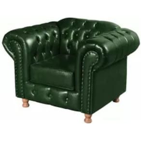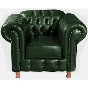 Poltrona Chesterfield Luís XV Vintage Retrô Capitonê Couro Verde