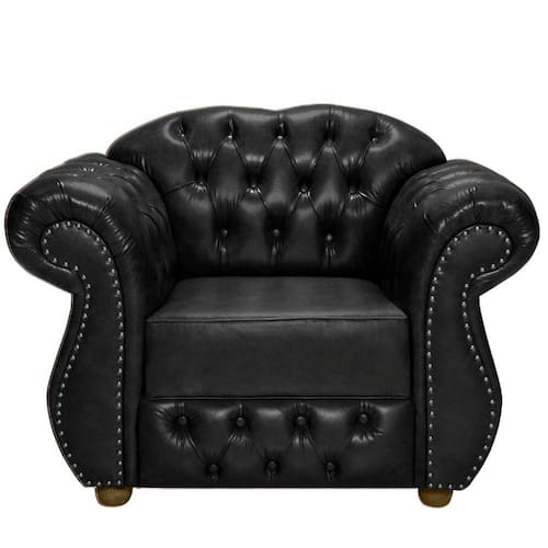 A Poltrona Chesterfield Merlô é uma peça atraente na decoração, a poltrona gera mais beleza e sofisticação na decoração de ambientes refinados, é excelente para favorecer o ambiente com uma decoração clássica, luxuosa, imponente e confortável. É produzida em courino preto, trazendo elegância a peça. Com a estrutura em madeira maciça eucalipto tratado proveniente de área de reflorestamento e estofada artesanalmente. Leve harmonia e graciosidade para o seu ambiente com a poltrona Chesterfild Merlô da Via .