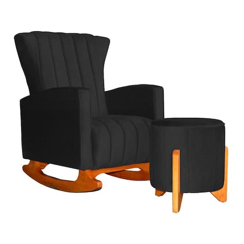 Poltrona Com Balanço E Puff Melinda Suede Preto Mz Decor