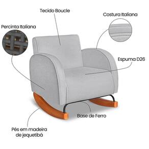 A Poltrona Cindy em bouclé oferece o equilíbrio perfeito entre estética contemporânea, conforto e um movimento de balanço relaxante. Seu design com linhas curvas cria acolhimento imediato, enquanto o tecido bouclé traz textura sofisticada e toque extremamente agradável. A base feita em madeira Jequitibá com ferro garante estabilidade e um balanço suave, ideal para momentos de descanso, leitura ou amamentação.