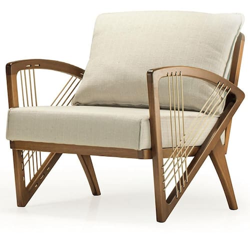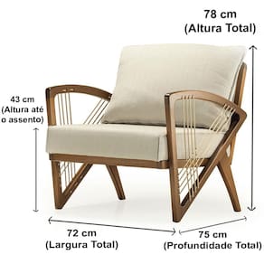 A Poltrona Gandú apresenta braços com detalhes curvos e com cordas transpassadas na madeira para dar um toque de suavidade e conforto dando ar ainda mais de modernidade, trazendo um design expressivo e ergonômico, unindo sua forma e função com um conceito visual inovador. É uma belíssima opção para compor o seu ambiente, trazendo elementos da natureza para sua decoração integrando estética e funcionalidade com muito charme e conforto. Poltrona Gandú possui um assento em Espuma Soft 28 e encosto Espuma Eco Soft 20 com tecido em 60% Algodão e 40% Poliéster, com uma estrutura Produzida em 100% em madeira eucalipto proveniente de reflorestamento, sua estrutura encosto possuem recortes vazados e um detalhe especial além de possuir Cordas de couro reconstituído na cor envelhecido que dá um toque todo especial ao produto e mostra o encaixe perfeito de elegância e modernidade que só a Ozki tem. Esse produto é feito exclusivamente pelo designer Solonide Cardoso, um renomado profissional que trabalha com materiais ecologicamente corretos. Seus desenhos são inéditos e criativos e são feitos com equilíbrio e elegância